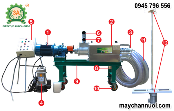 Máy tách phân bò 3A được cấu tạo gồm 11 bộ phận chính như sau: