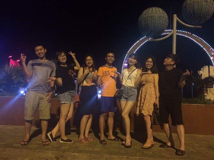 Mặt trời khuất dần xuống lòng biển, vẫn những đợt sóng vỗ bờ nhưng dường như êm đềm hơn. Khác với sự êm đềm của biển cả là không khí nhộn nhịp, tấp nập của một thành phố đang chuyển mình. Chúng tôi cùng sát vai nhau, tay trong tay đi dạo dưới những con đường lấp lánh ánh đèn. Những tiếng cười nói, những câu chuyện sâu lắng được chúng tôi chia sẻ vào khoảng khắc ấy. Có lẽ không một môi trường làm việc nào lại mang đến cho chúng tôi nhiều người bạn tri kỉ đến như vậy.