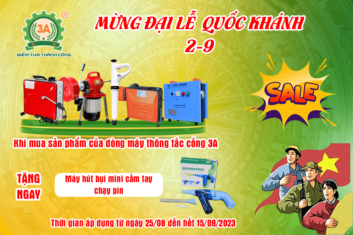 ✔️ Các dòng máy thông tắc cống 3A: Tặng 01 máy hút bụi cầm tay mini chạy pin.