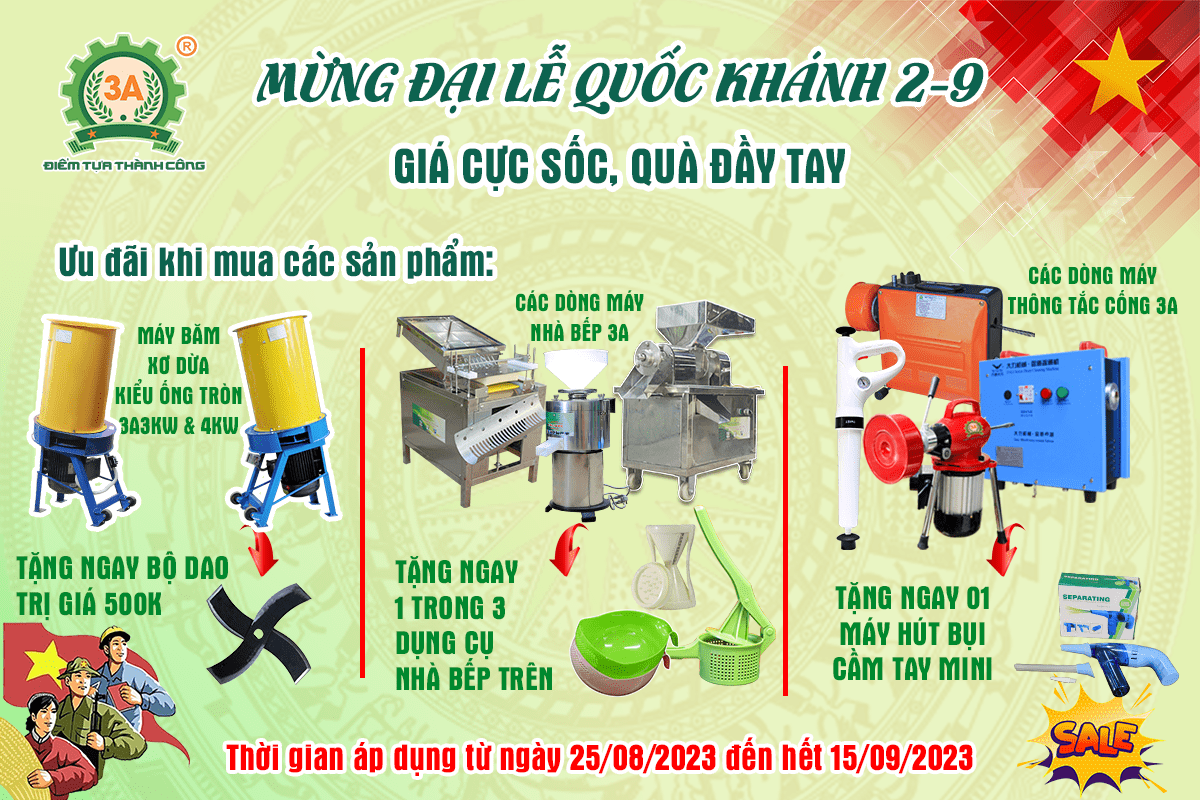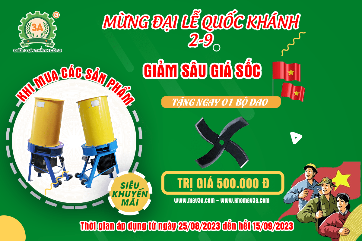 ✔️ Máy băm rơm, xơ dừa kiểu ống tròn 3A3Kw & 3A4Kw: Tặng 01 bộ dao trị giá 500.000 đồng.