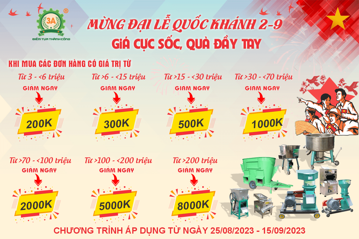 Để tri ân khách hàng đã tin tưởng và ủng hộ thương hiệu 3A trong suốt thời gian vừa qua. Công ty CPĐT Tuấn Tú xin trân trọng thông báo đến Quý Khách Hàng, Quý Đối Tác chương trình khuyến mãi siêu hấp dẫn nhân dịp đại lễ Quốc Khánh 2/9.