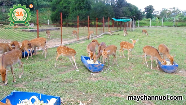 Bà con có thể dùng Máy chế biến thức ăn chăn nuôi 3A2,2Kw (Phễu vuông) để nghiền bột - Nghiền nát nhuyễn - Băm nhỏ các loại như: sắn khô, ngũ cốc, ngô, rau cỏ, củ sắn, bắp ngô, củ khoai,...rồi trộn làm thức ăn cho hươu.