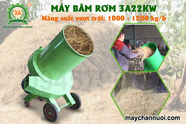 Máy băm rơm công nghiệp 3A22kW do nhà sáng chế Nguyễn Hải Châu cùng các kỹ sư của hãng máy 3A nghiên cứu chế tạo. Thiết bị được tích hợp nhiều tính năng nên giúp người dùng băm nhỏ rơm rạ, máy xay xơ dừa tơi ra thành sợi nhỏ, phục vụ trồng nấm. Ngoài ra, máy băm rơm làm nấm còn được sử dụng để băm thân cây ngo, băm cỏ voi, vỏ dừa, bã mía… để làm thức ăn chăn nuôi hoặc làm phân bón hữu cơ. Với tính đa năng đây chính là chiếc máy chăn nuôi tốt nhất.