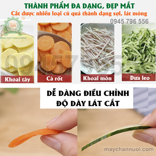 Nếu phải chế biến số lượng lớn rau, củ, quả bằng cách cắt thủ công sẽ tốn nhiều thời gian và nhân lực. Với mong muốn đồng hành cùng người đầu bếp Công ty CPĐT Tuấn Tú đã phân phối ra thị trường rất nhiều loại máy cắt rau củ quả đa năng, trong đó có Máy cắt sợi củ quả 3A180W là một trong những thiết bị thái rau củ quả hỗ trợ đắc lực cho các chị em nội trợ và các đầu bếp. Máy được tích hợp 2 tính năng đó là thái sợi và thái lát mỏng. Với tinh năng này máy giúp giảm thời gian chế biến và tăng năng suất, phù hợp với các nhà hàng, quán ăn hoặc các hộ kinh doanh thực phẩm.
