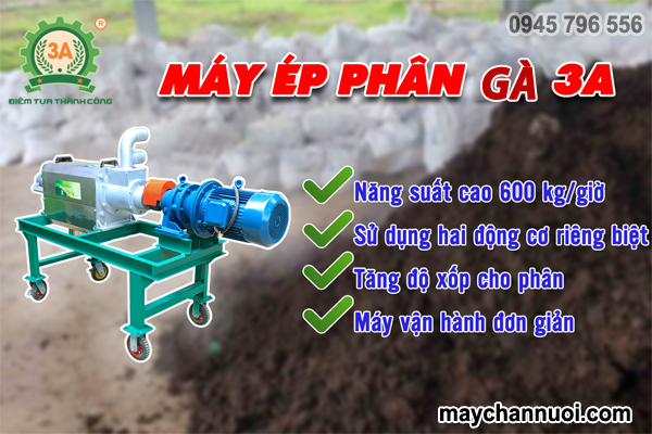 Máy ép phân gà 3A7,5Kw có năng suất ép được từ 300-600kg phân và sản phẩm đầu ra mang lại giá trị kinh tế cao, với năng suất cao này máy tách phân lợn 3A7,5Kw đã được ứng dụng rộng rãi trên thị trường. Đối với các dòng máy ép phân tách nước của 3A đều được nghiên cứu chế tạo áp dụng kỹ thuật tiên tiến để đưa tới bà con sản phẩm chất lượng.
