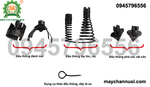 Máy thông tắc cống 3A GQ1200 có 6 đầu thông tắc khác nhau cho từng trường hợp tắc cống, giúp bạn thông tắc đường ống hiệu quả.