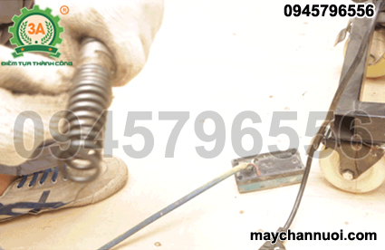 5-Cần ép 6-Lỗ luồn dây lò xo qua máy 7-Công tắc 8-Bánh xe  |