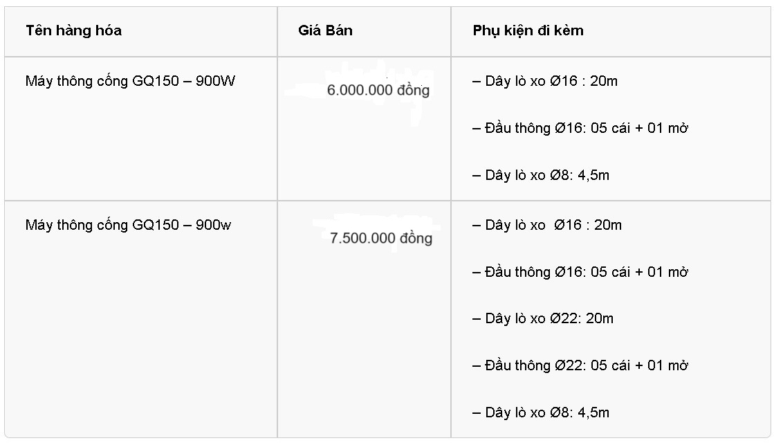 Cùng với máy thông tắc cống 3AGQ150-900W, Công ty chúng tôi còn cung cấp nhiều thiết bị thông cống khác như: Máy thông tắc lò xo DL170, máy thông tắc GQ85, máy thông cống khí nén, dây lò xo thông cống,....