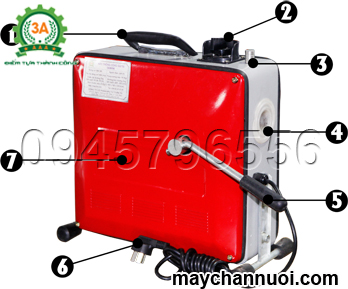 4.Ống dẫn lò xo 5.Cần ép 6.Dây cắm 7.Thân máy |