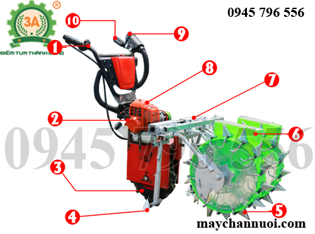 | 4- Bộ phận cào, lấp đất | 9- Cấp gió động cơ |