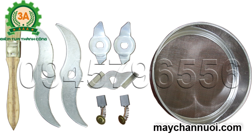 | 1. Động cơ 2. Núm điều chỉnh độ nghiêng của máy 3. Thùng nghiền 4. Nắp máy 5. Chốt giữ nắp máy 6. Núm điều chỉnh 7. Cầu chì |