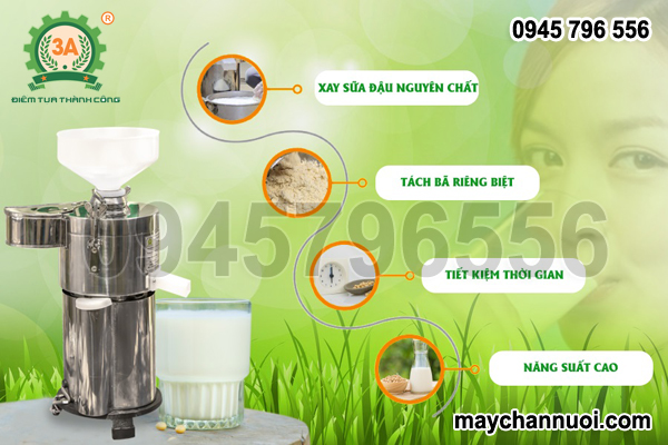 Sản phẩm có tính năng xay đậu nành làm sữa hiệu quả. Ngoài ra, chiếc mày này cũng nghiền được các loại nguyên liệu như đậu xanh, đậu đỏ, ngô tươi, gạo... thành dạng nước để chế biến các món ăn thơm ngon khác.