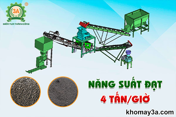 Dây chuyền sản xuất phân bón hữu cơ 3A 4 tấn/h được Hãng 3A nghiên cứu và chế tạo, với mục đích sản phẩm cuối cùng được tạo ra giàu chất dinh dưỡng có lợi cho cây trồng, bảo vệ sức khỏe con người một cách an toàn nhất và đã được rất nhiều khách hàng đánh giá cao về chất lượng sản phẩm của nhiều bà con nông dân.
