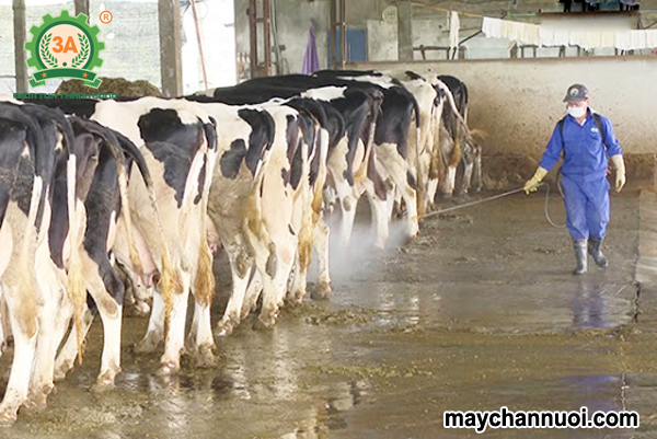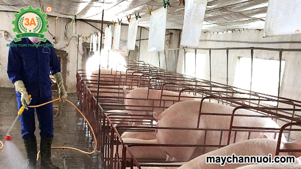 Dùng nước xà phòng, nước vôi 30% hoặc thuốc tẩy rửa để phun, dội rửa lên nền hoặc ngâm các dụng cụ chăn nuôi.