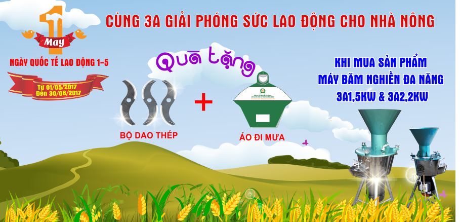 Khi mua mỗi sản phẩm Máy băm nghiền đa năng (BNĐN) 3A1,5Kw hoặc BNĐN 3A2,2Kw phễu tròn (loại 220V), khách hàng sẽ được nhận một phần quà bao gồm: