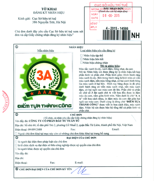 Doanh nghiệp chúng tôi đã được Cục Sở hữu trí tuệ Hà Nội đăng ký nhãn hiệu độc quyền với THƯƠNG HIỆU 3A.