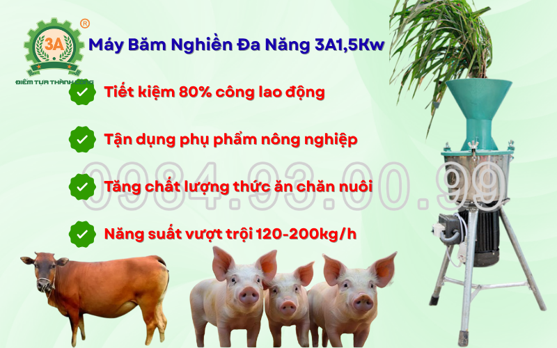 Trong bối cảnh chăn nuôi hiện đại ngày càng đòi hỏi hiệu quả và tiết kiệm, máy băm nghiền đa năng đã trở thành giải pháp không thể thiếu cho các hộ nông dân. Với khả năng băm nhỏ, nghiền nát, và nghiền bột khô, máy băm nghiền đa năng 3A1,5Kw giúp giảm tới 80% công sức và thời gian chế biến thức ăn chăn nuôi. Hãy cùng khám phá cách thiết bị này hỗ trợ nhà nông nâng cao năng suất và tối ưu chi phí như thế nào nhé?