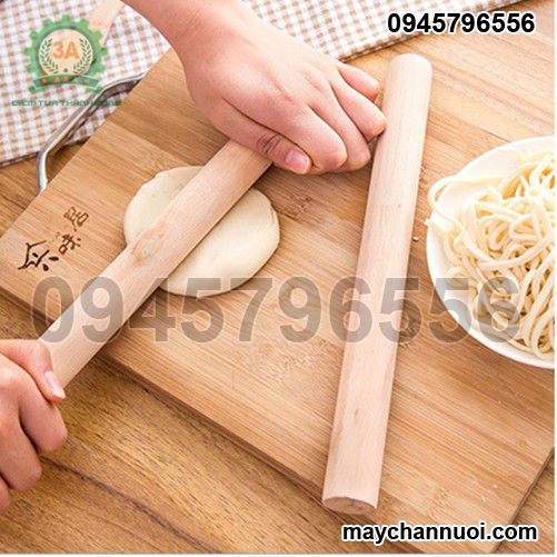 Hình ảnh một đầu bếp đang cán bột bằng chày gỗ