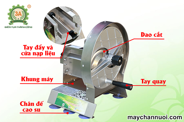 Máy cắt lát rau, củ, quả 3A (loại quay tay) có lưỡi cắt làm bằng inox sắc bén. Nhờ vậy, chiếc máy có thể thái được đa dạng nhiều loại nguyên liệu khác nhau mà không làm ảnh hưởng đến chất lượng lát cắt.