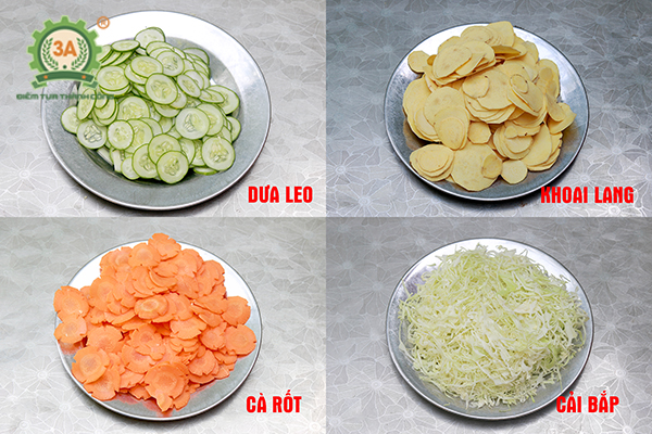 Toàn bộ nguyên liệu được thái đồng đều, đẹp mắt, không bị dập nát nên rất phù hợp vào việc chế biến nhiều món ăn hấp dẫn như nộm, salat, xào thập cẩm…vv