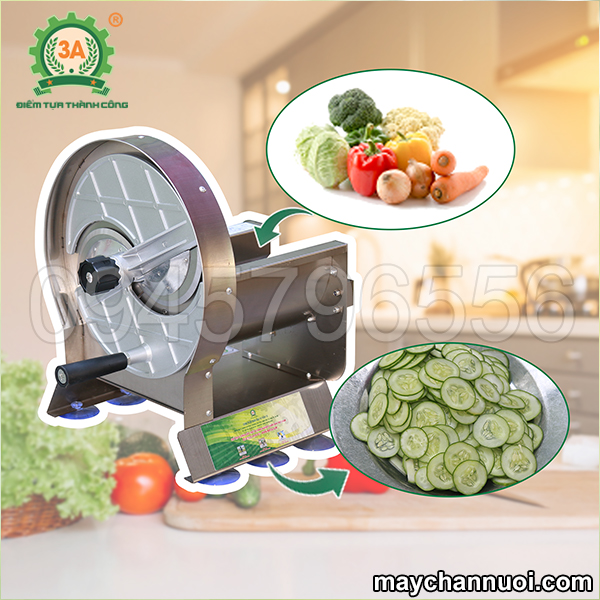 * Hãy nhanh chóng tạm biệt những hạn chế đó bằng sự xuất hiện của máy cắt lát rau, củ, quả 3A (loại quay tay)