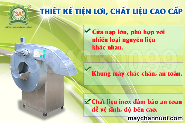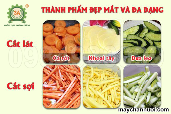 | Sản phẩm đầu ra | Thái lát: 1 - 8 (mm) Sợi vuông: 8x10 (mm) |