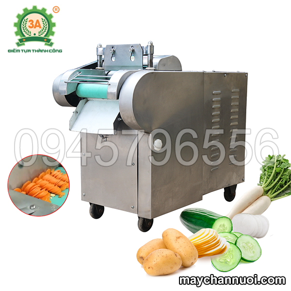 Máy cắt rau, củ, quả đa năng 3A (Loại có băng tải) thuộc dòng thiết bị nhà bếp, được sử dụng để cắt các loại rau, củ, quả và các loại thịt lợn, thịt bò đã được sơ chế (nấu chin),… thành dạng lát mỏng hoặc lát dày nhanh chóng và đẹp mắt.