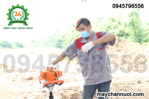 - Máy khoan đất chạy xăng 3A khởi động theo kiểu giật dây với hiệu suất khoan từ 2 - 5 (phút/lỗ) giúp người dùng tiết kiệm thời gian, nâng cao năng suất lao động.
