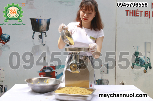 -Nguyên liệu khi đưa vào ép phải được nghiền nhỏ bao gồm các loại cám ngô, cám gạo, bột cá, bột thịt…vv. Lưu ý, máy không thể ép được các nguyên liệu cứng ở dạng thô.