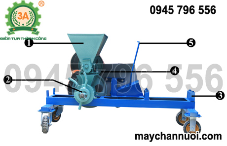 | 1. Phễu cấp liệu tự động | 4. Bộ truyền đai và nắp bảo vệ |