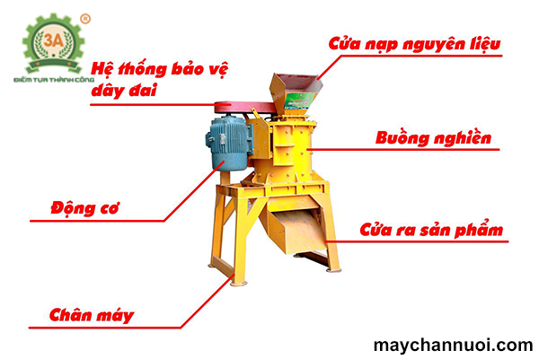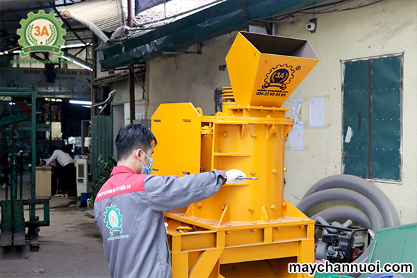 Động cơ máy nghiền đá mạt 3A được thiết kế hợp lý gắn ở phần bên cạnh buồng nghiền, giúp thuận tiện trong quá trình vệ sinh khi dùng vòi xịt nước rửa mà không lo nước rò rỉ vào động cơ.