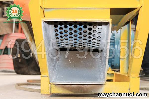 Bên trong buồng máy có lắp đặt thêm cánh quạt gió. Khi băm nghiền, thành phẩm được thổi với lực mạnh nên thoát ra một cách dễ dàng. Giảm thiểu được tối đa các tình trạng kẹt mặt sàng, kẹt máy.
