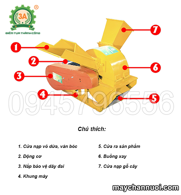 Máy nghiền gỗ, xơ dừa 3A15Kw được nhà sáng chế Nguyễn Hải Châu và các kỹ thuật viên xưởng máy 3A nghiên cứu, thiết kế tối ưu đến từng chi tiết. Cửa nạp được thiết kế tiện lợi, góc nghiêng > 45 độ. Phù hợp với thao tác vận hành của người dùng.