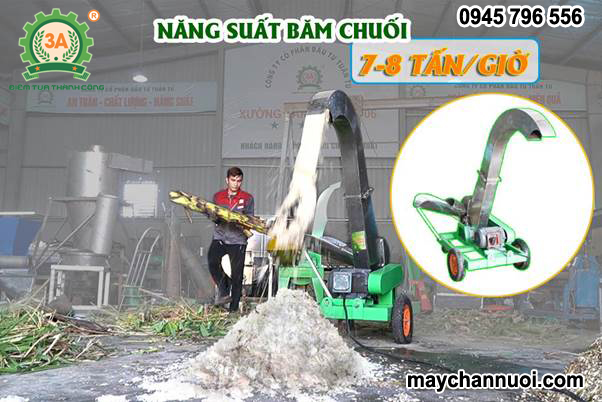 Máy xắt chuối mịn 3A7,5kW với năng suất băm thân cây chuối tươi đạt 7 - 8 tấn/giờ và năng suất băm cỏ đạt 4 - 5 tấn/giờ đã trở thành là trợ thủ đắc lực cho bà con chăn nuôi hoặc dùng xử lý phụ phẩm nông nghiệp làm phân hữu cơ, làm thức ăn thô xanh cho trâu bò. Và đồng thời giúp bà con giảm được công lao động cho việc băm nhỏ thức ăn cho vật nuôi, tiết kiệm chi phí, thời gian.