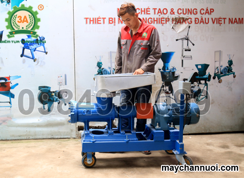 - Cho từ từ nguyên liệu vào phễu nạp nguyên liệu của máy