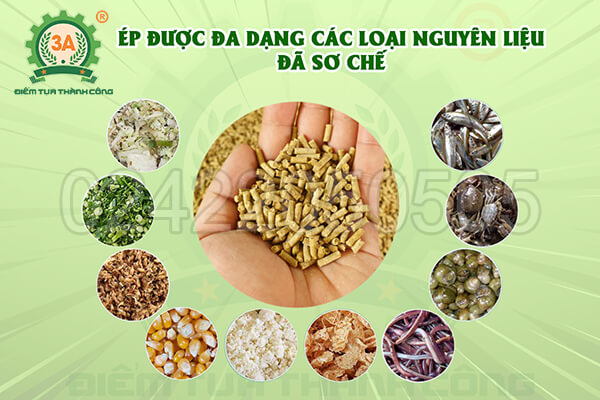 Đây là ưu điểm vượt trội của máy. Bà con có thể phối trộn đa dạng các loại nguyên liệu như bột ngô, bột cá, cám gạo với các nguyên liệu tươi đã được sơ chế như rau băm nhỏ, cua, ốc, cá đã xay nhuyễn... để tạo ra một viên cám tổng hợp giàu dinh dưỡng nhất. Máy có thể xử lý được hỗn hợp nguyên liệu có độ ẩm nhất định, điều mà các máy nghiền khô thông thường không làm được.