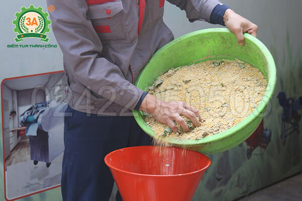 Cắm điện, khởi động máy. Từ từ đổ hỗn hợp đã trộn vào phễu nạp. Máy sẽ tự động ép và đùn ra những viên cám nóng hổi, thơm ngon ở cửa xả. Bà con chỉ cần chuẩn bị khay hoặc mẹt để hứng thành phẩm, sau đó phơi khô là có thể cho vật nuôi ăn hoặc bảo quản.