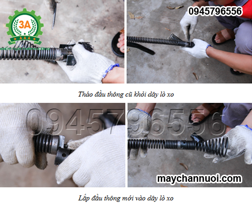 Thiết bị thông tắc lò xo GQ-790 có các đầu dây xoắn lò xo lắp đầu thông các hình dạng khác nhau chuyên dụng phù hợp với các loại phế thải gây tắc. Với các đầu thông chuyên dụng này và lực mô men xoắn rất lớn của động cơ 4Kw sẽ đánh bật tất cả các vật làm tắc ống.