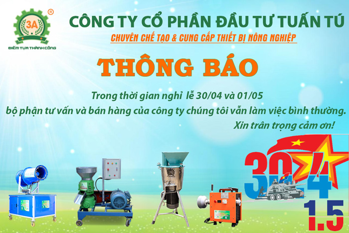 Theo kế hoạch làm việc, Công ty chúng tôi vẫn làm việc bình thường vào hai ngày lễ: Ngày Giải Phóng Miền Nam 30/4 và ngày Quốc Tế Lao Động 1/5. Khách hàng có thể liên hệ hoặc đến công ty mua sản phẩm như những ngày bình thường.
