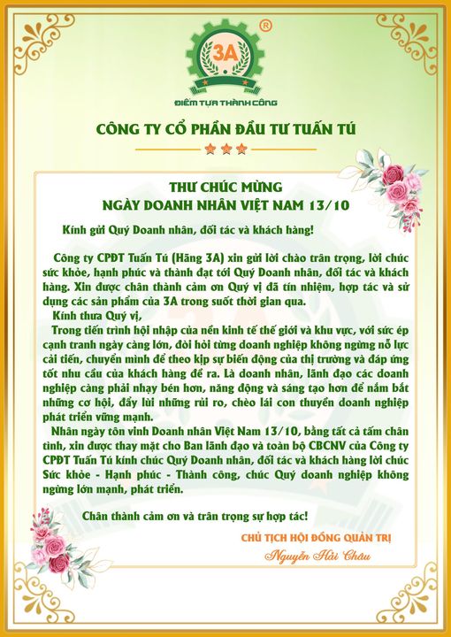 THƯ CHÚC MỪNG NGÀY DOANH NHÂN VIỆT NAM 13/10